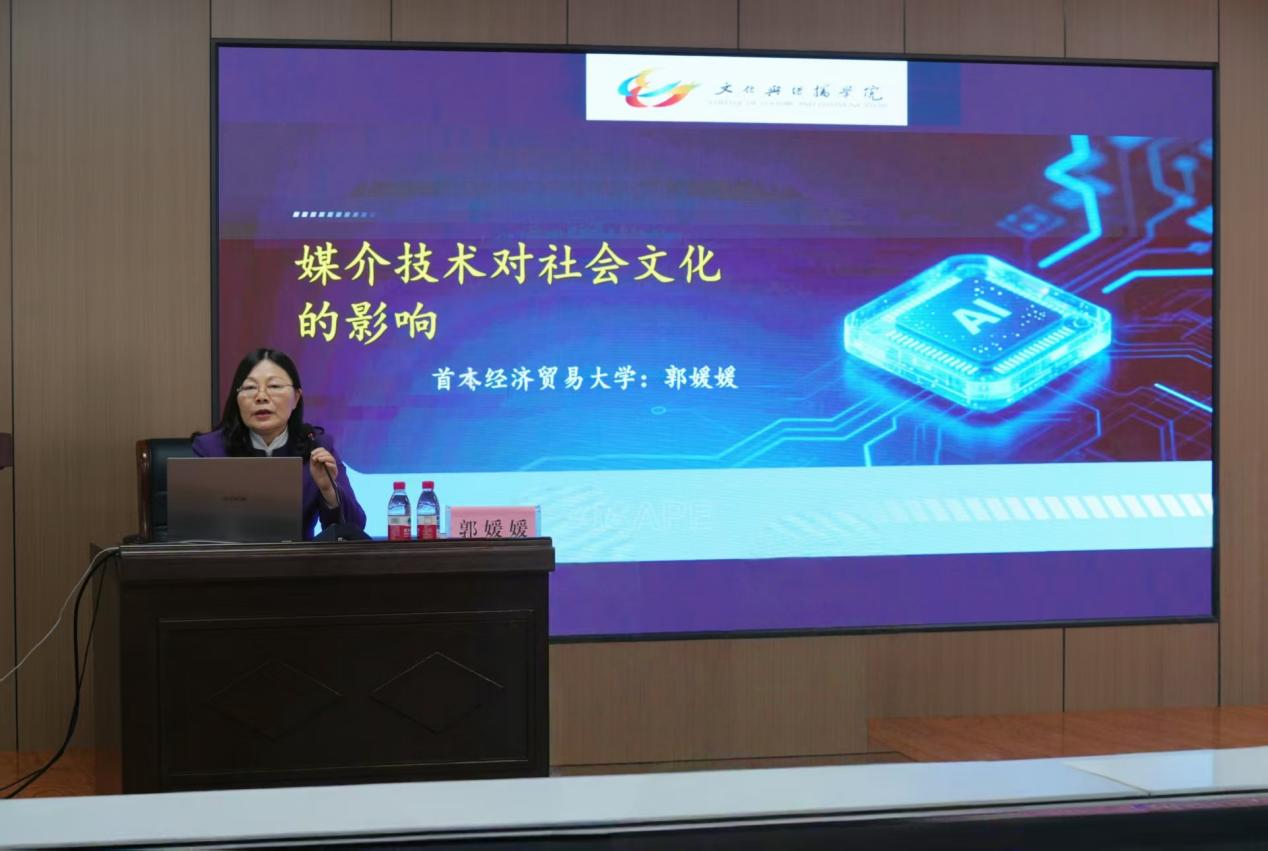 3月21日上午,全国政协委员、首都经济贸易大学特大城市经济社会发展研究院副院长、文化与传播学院教授郭媛媛受邀来校在大学生职业发展中心307作题为“媒介技术对社会文化的影响”的学术讲座,本次讲座系全国政协文化文史和学习委员会“文化惠民”活动之一。文学与传媒学院副院长汪淑双主持。