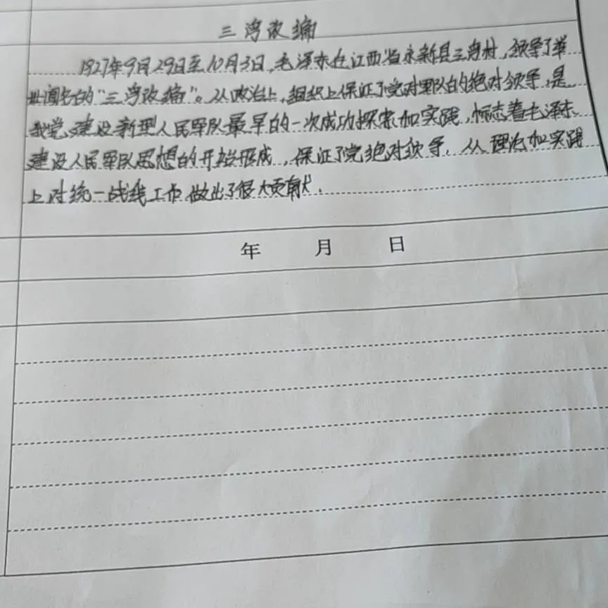 1927年9月29日至10月3日,毛泽东在江西省永新县三湾村,领导了举世闻名的“三湾改编”。