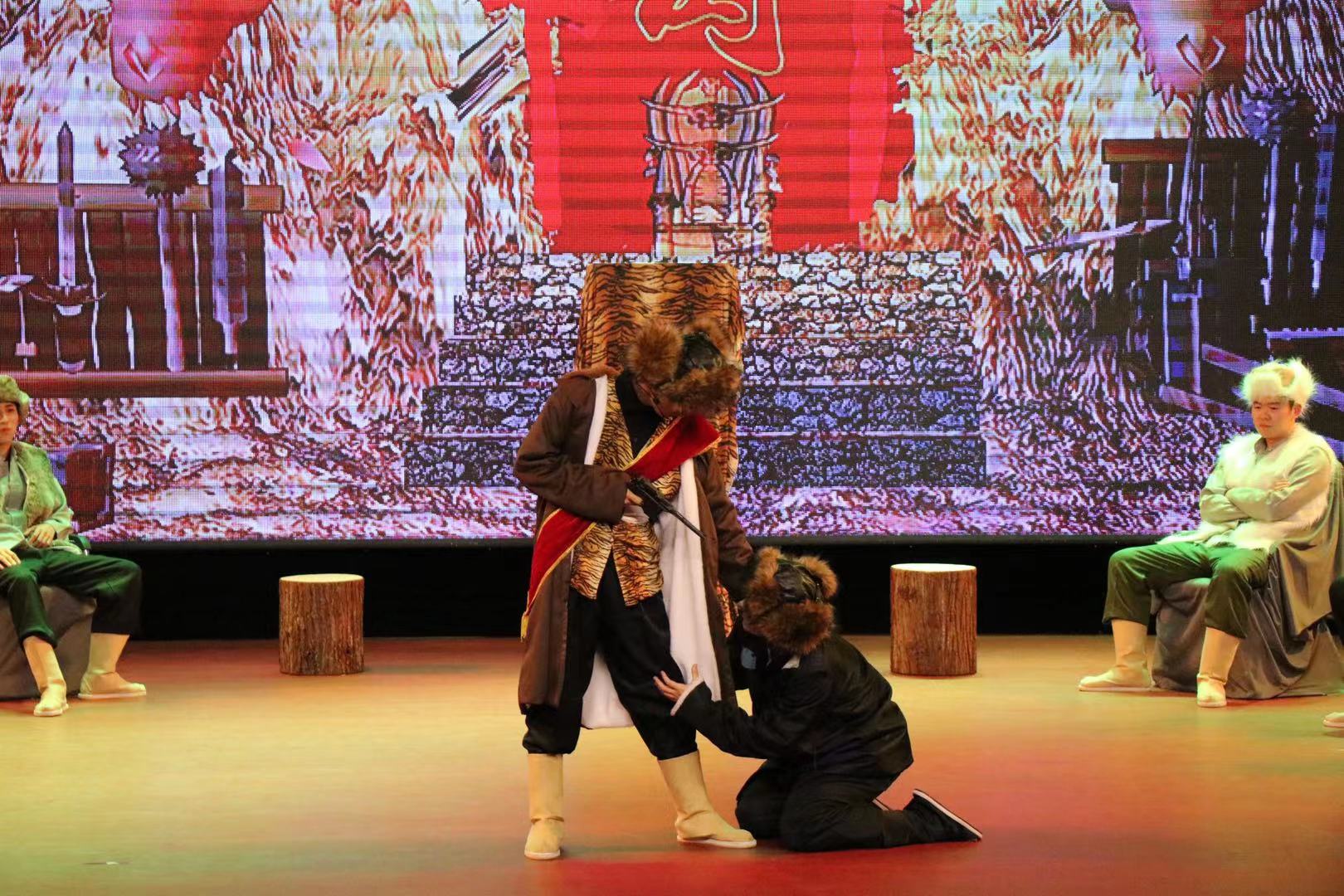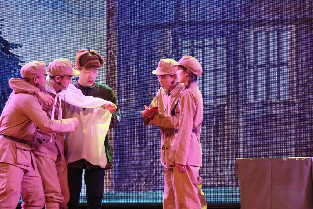 “穿林海,跨雪原,气冲霄汉!抒豪情寄壮志面对群山……迎来春色换人间 ……”6月2日晚,文学与传媒学院自编、自导、自演的红色革命题材话剧《智取威虎山》在大学生活动中心上演,献礼建党100周年。