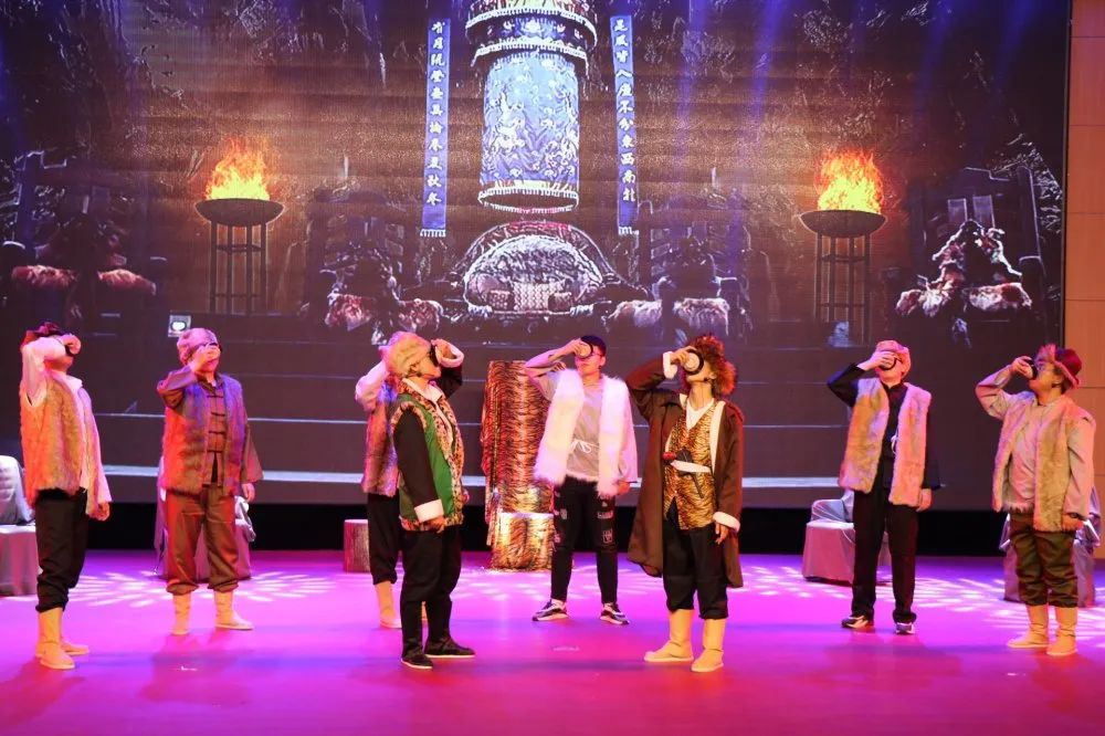 在学校团委和文学与传媒学院领导的指导下,2018级辅导员鞠亚林带领19名话剧社团演职人员,经过了近一个半月的精心准备和紧张排练,终于将根据真实历史事件改编的红色革命文学作品《林海雪原》中的经典剧目《智取威虎山》以话剧的表演形式搬上舞台。从演员角色的选定到服装道具的准备,从故事情节的选取再到表演细节的推敲,老师和学生们都倾注了极大的心力。在演出的排练过程中,令所有人最为难的就是没有现成的话剧作品作为参照,六七十年代的京剧样板戏不易吸引年轻的大学生,近些年的影视作品对演员表演功底的要求又极为严苛,面对这些困难,节目组采取扬长避短、博采众长的方式,将戏剧表演中的传统元素与影视作品中的表演技巧相结合,创造性地编排出了一场能为我校师生所喜闻乐见的话剧节目。