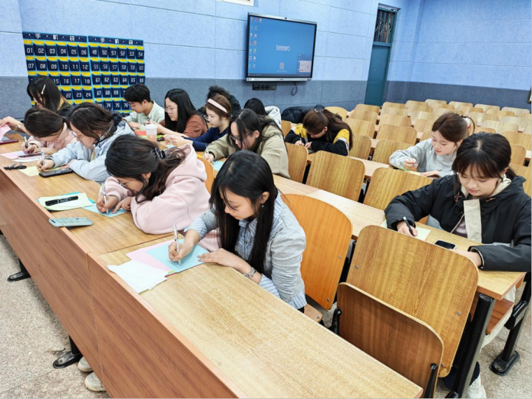活动现场设置两大环节,为同学们搭建起沉浸式文化体验平台。在红色主题短诗创作区,同学们围绕“致革命先烈”、“致春日清明”两大主题,以多种形式将对先烈的崇敬、对春日的热爱凝于笔端。一篇篇赤诚之作悉数张贴于主题展示墙,大家在笔墨交流中深化对红色文化与节日内涵的理解。
