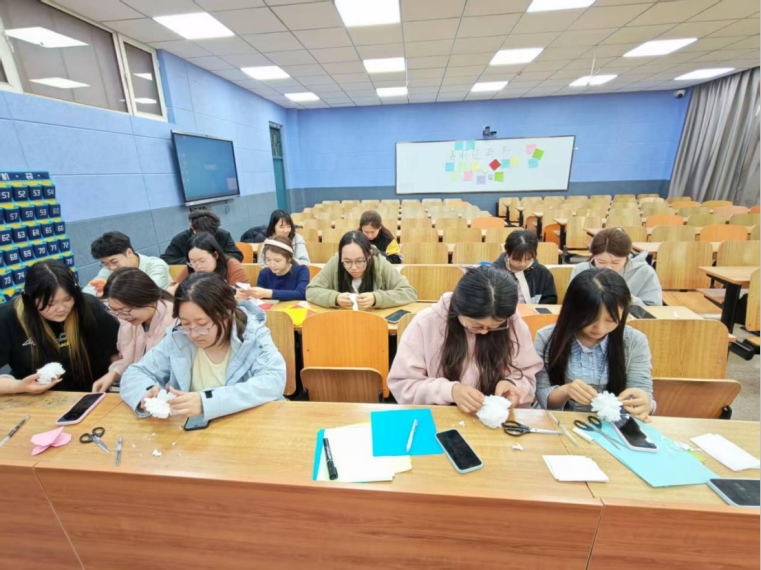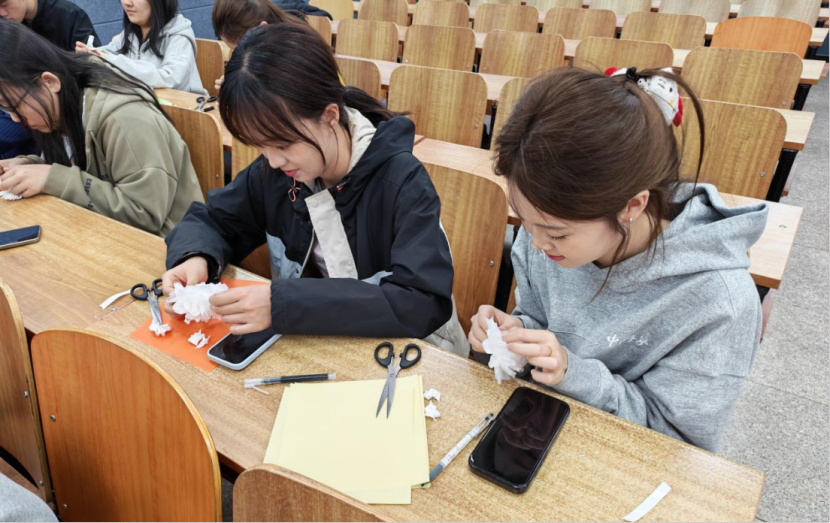 在环保祭祀创作区,同学们践行“以纸寄思、以花代烛”的环保理念。大家认真学习折纸技法,将素纸折成朵朵纸花,以低碳、绿色的方式传递敬意,用实际行动践行文明追思的时代理念,让传统习俗在青春实践中焕发时代生机。