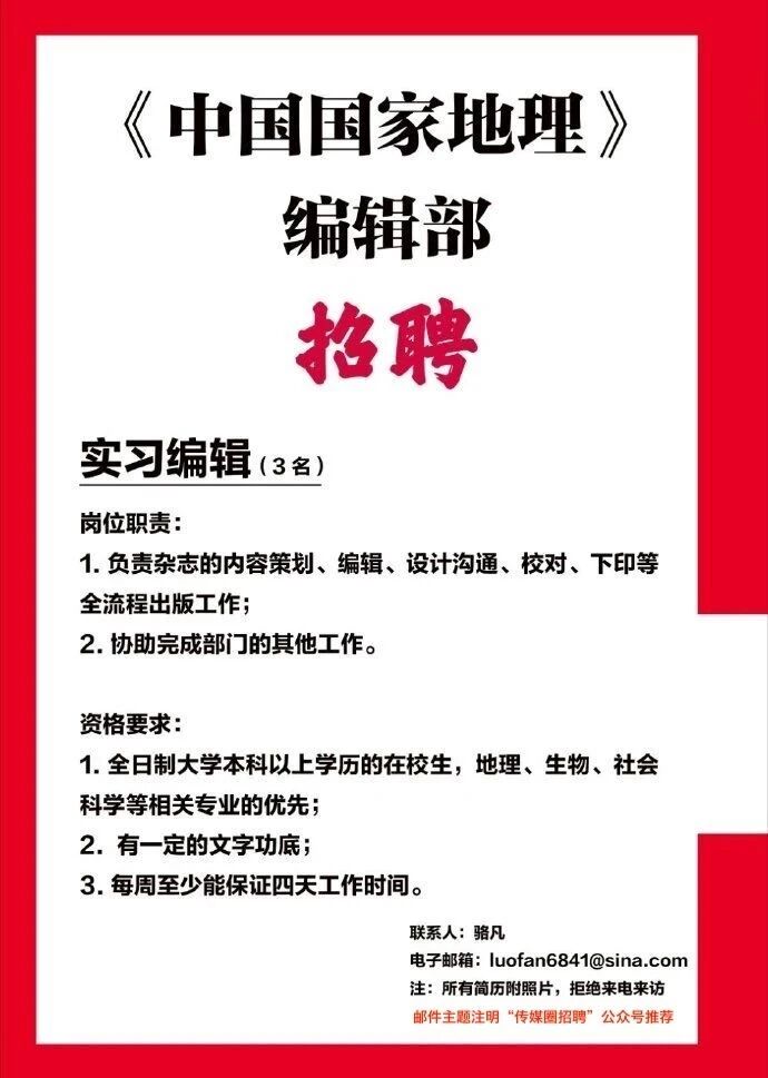 就业指导丨《中国国家地理》编辑部招聘公告!