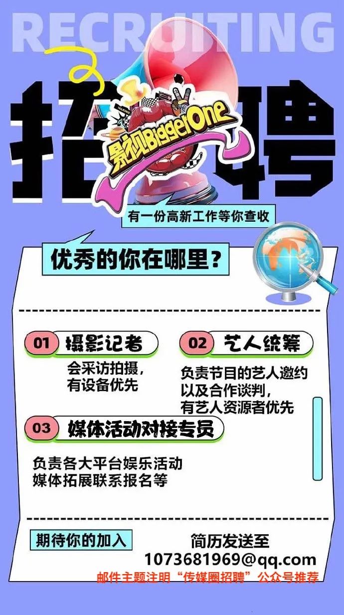 就业指导丨影视Bigger One招聘公告(3大岗位 全部正职)