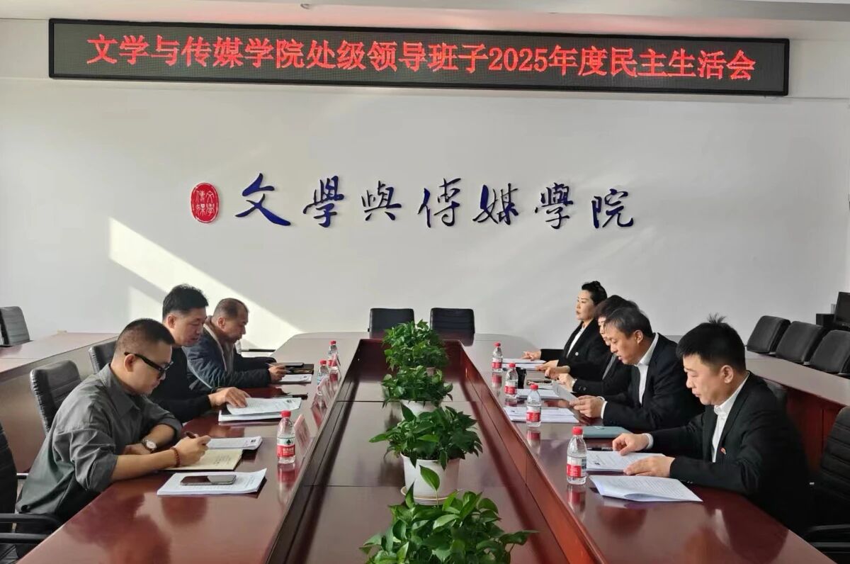 为了深入学习贯彻习近平新时代中国特色社会主义思想,全面贯彻落实党的二十届四中全会精神,以打好攻坚战、持久战的决心和恒心,锲而不舍落实中央八项规定精神,全面落实党中央及省委、学校党委关于开好2025年度民主生活会的部署要求。2月27日,文学与传媒学院召开处级领导班子2025年度民主生活会,学校人事处处长唐国忠、校工会副主席沈大伟、纪委办公室综合科科长潘立坤莅临指导,文学与传媒学院处级领导班子成员参加会议,会议由学院党总支书记王子鸣主持。
